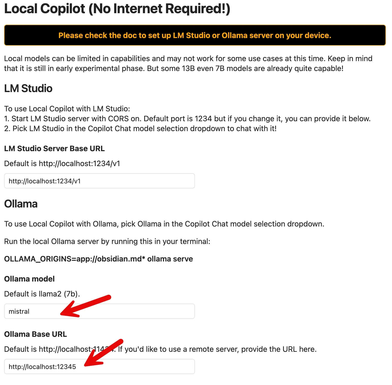 Tutorial for local copilot can be found here: obsidian-copilot/local_copilot.md at master · logancyang/obsidian-copilot (github.com)