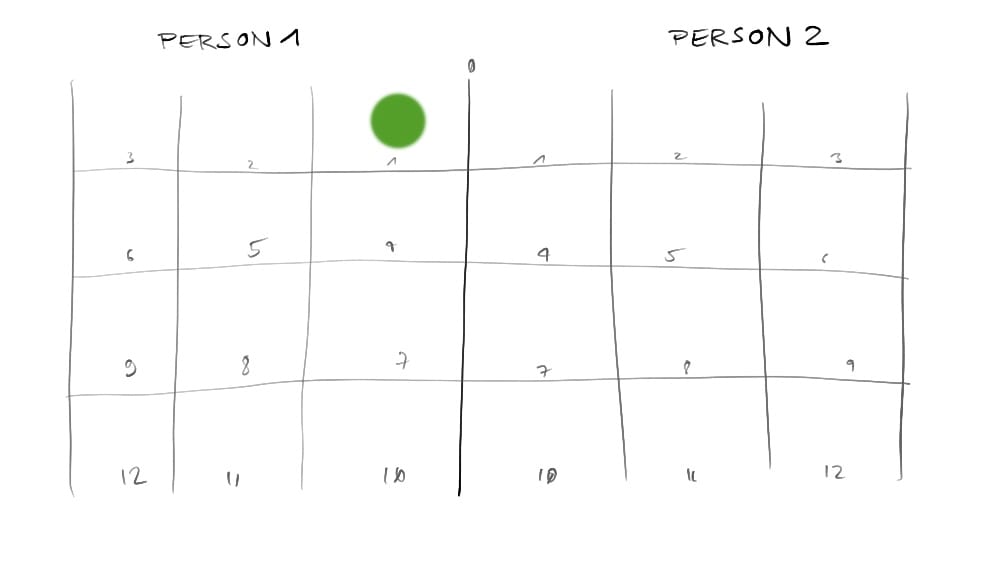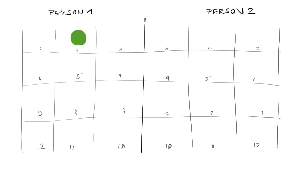 Let’s now say, Person 2 wakes up, realises they need to ‘collect points’ they will go and find something to do. That could mean, cleaning something up, taking out the trash etc.